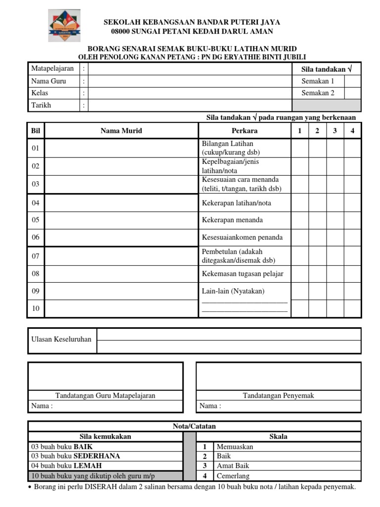 Borang Semakan Buku Latihan Murid Skkb 2019 Pdf